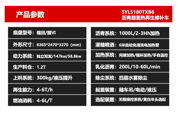 3)?具備出色的熱再生功能,舊瀝青路面再生利用率達(dá)到100%,坑槽挖補(bǔ)出的廢舊瀝青混合料無需粉碎,可百分百現(xiàn)場熱再生。具有較大產(chǎn)量、較高效率、較低施工成本、節(jié)能環(huán)保性能突出等特點(diǎn)。